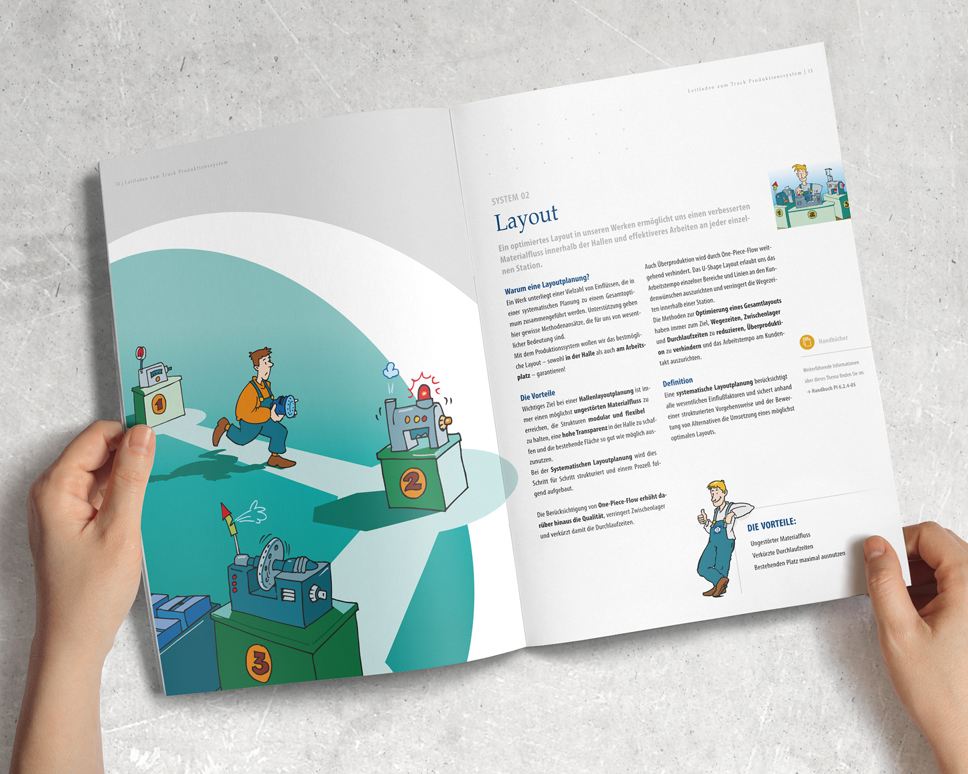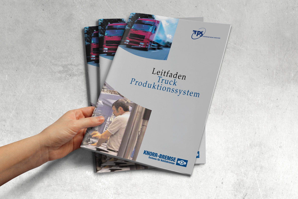 Begleitende Kommunikation zur Einführung eines neuen Produktionssystems bei Knorr-Bremse. Ausarbeitung von Leitmotiv, Claims, Aktionslogo und der Visuals für den Change Communication Prozess. Neben der Broschüre wurde auch das Interface für Infoterminals in den Produktionsstätten, Infoboards und weitere Kommunikationsmaßnahmen umgesetzt. Kunde: Knorr-Bremse Agentur: enowa Illustrationen: Claus Ast