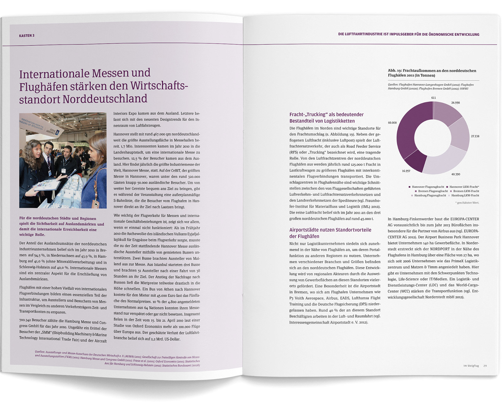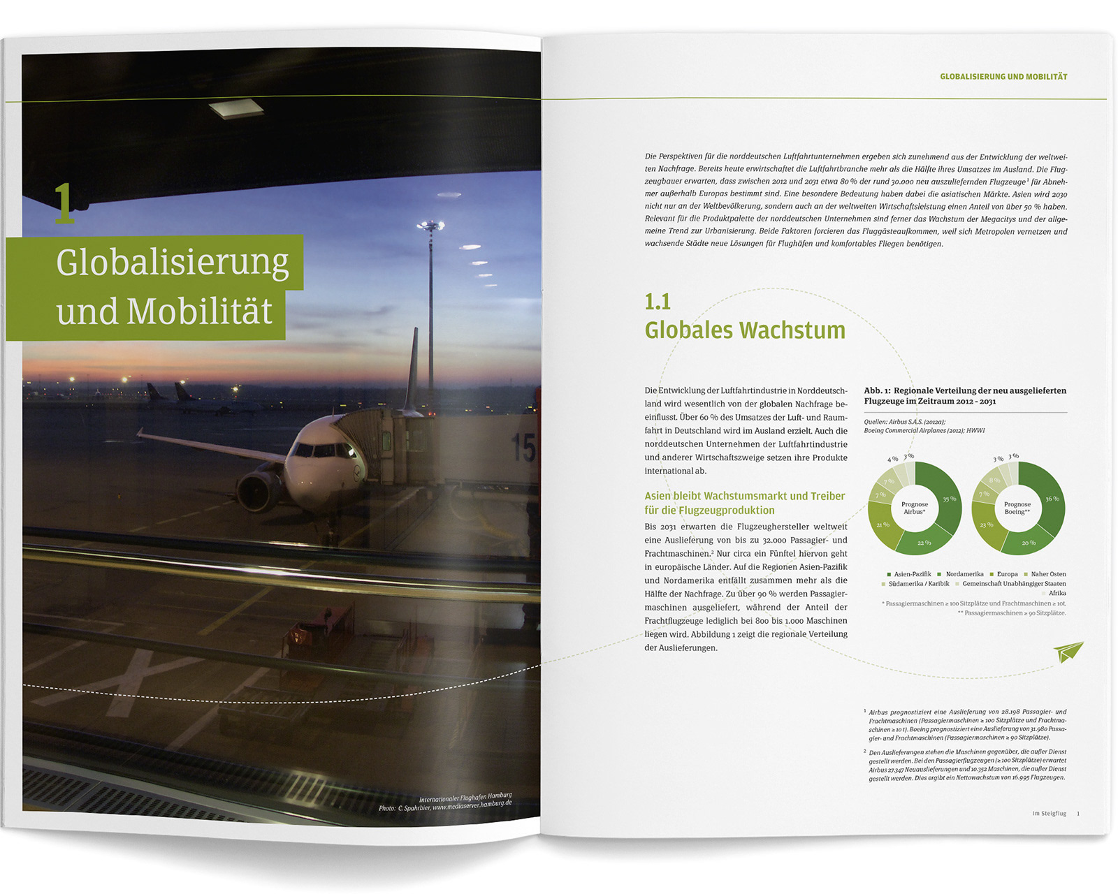 In Kooperation mit dem HWWI entstand eine Studie, die den Stellenwert der Luftfahrtindustrie für die Region Norddeutschland ausarbeitet. Umsetzung in Form einer Broschüre mit folgenden Leistungen: Idee, Konzeption & Gestaltung inkl. Produktion und direkter Abstimmung mit Institut und Kunden. Zudem wurde eine Website zum Thema mit dem gleichen Look & Feel umgesetzt. Kunde: Airbus Branche: Luftfahrt Agentur: enowa